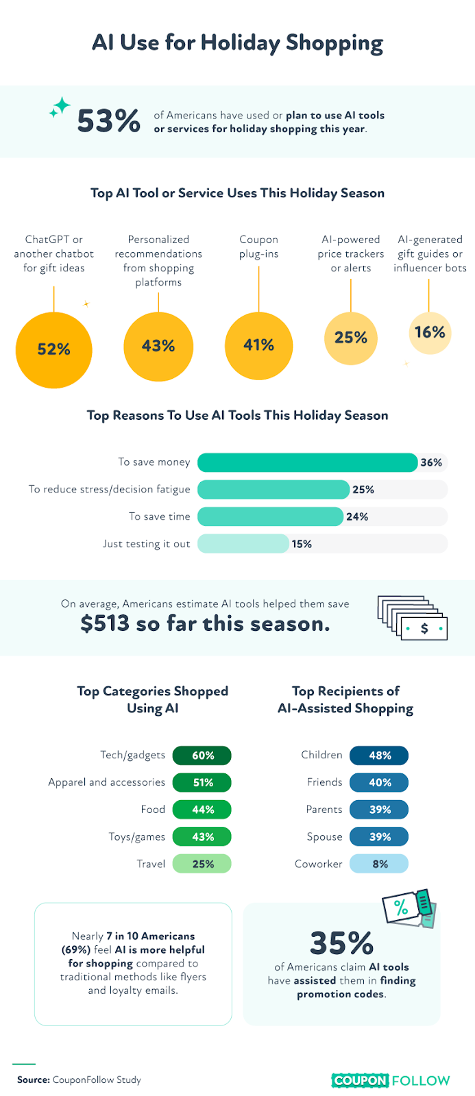 Saving money is the top reason Americans use or plan to use AI tools this holiday season. On average, Americans estimate that AI tools have helped them save $513 so far this season.