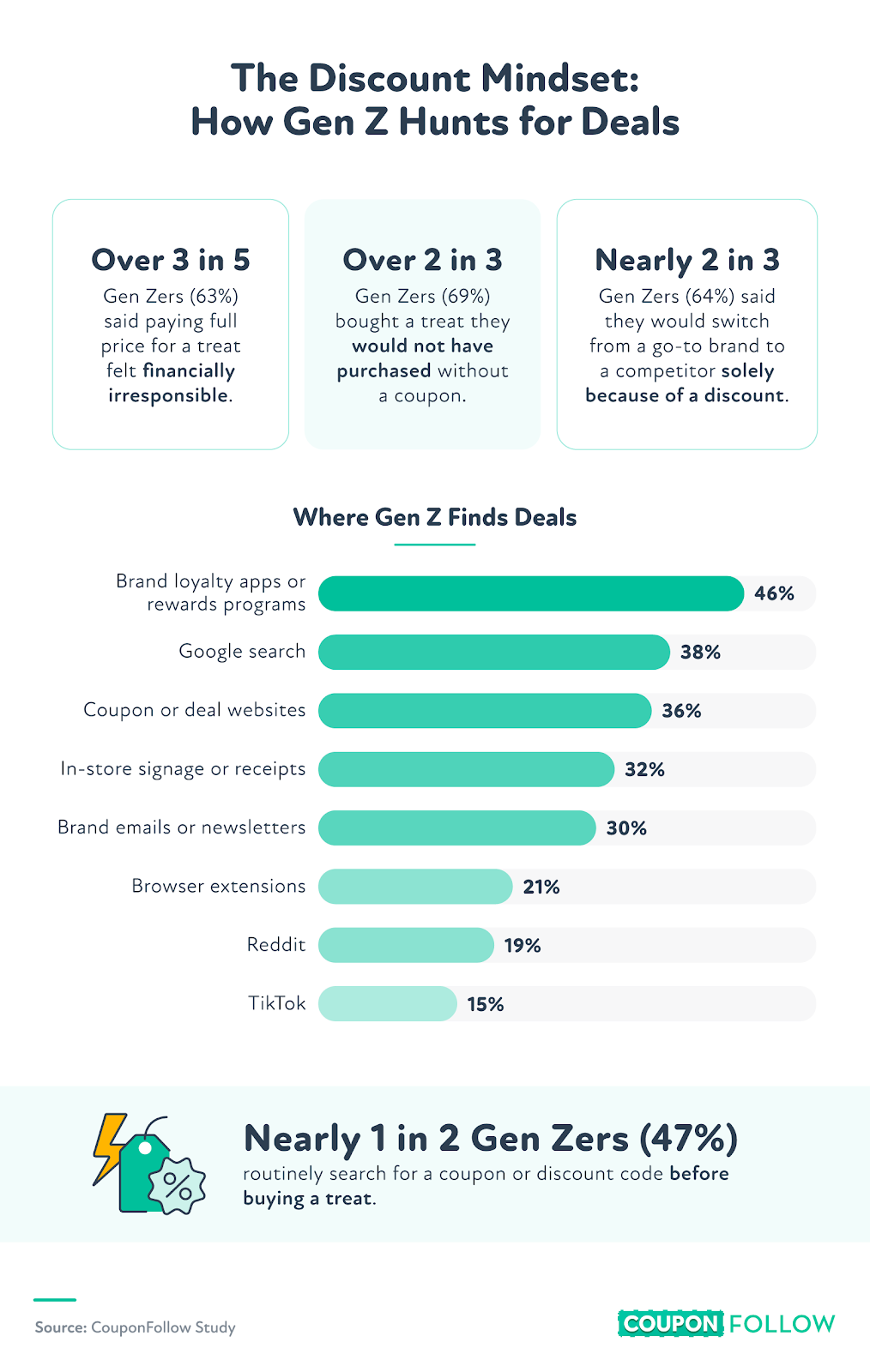 About half of Gen Z (47%) said they regularly search for coupons or discount codes before buying a treat. Their top savings sources were:
