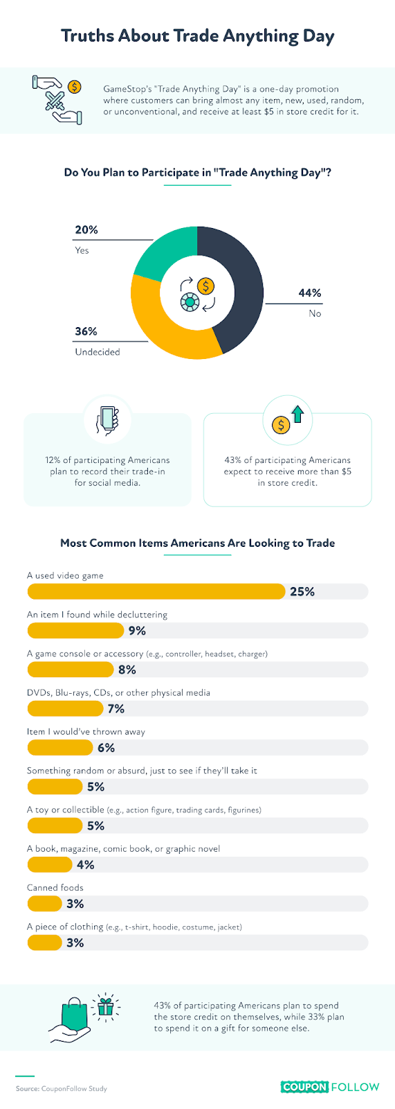 1 in 5 Americans plan to participate in GameStop's Trade Anything Day, while 36% are still undecided.